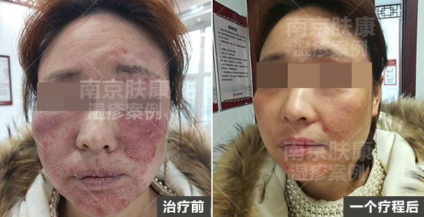 治疗前:脸部皮肤红疹,起皮,奇痒。
